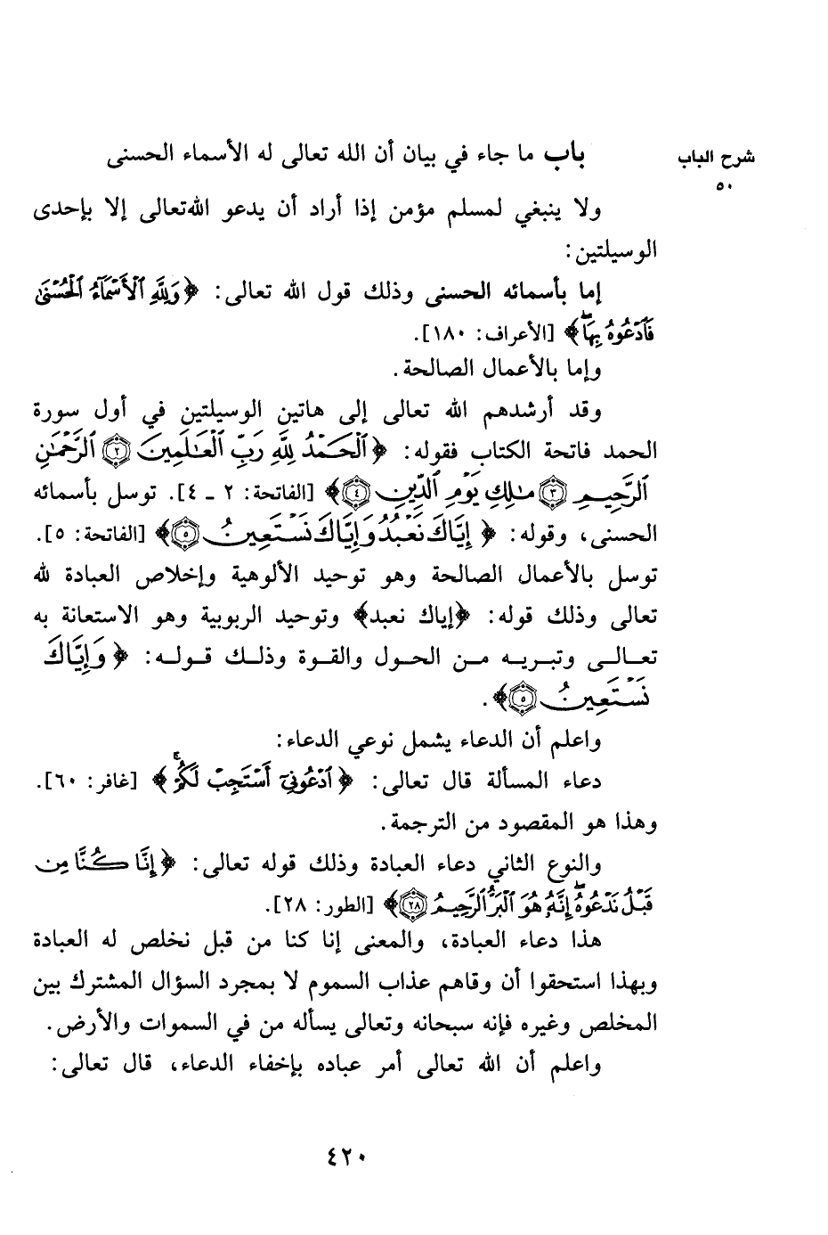 باب ما جاء في بيان أن الله تعالى له الأسماء الحسنى ولا ينبغي لمسلم مؤمن إذا أراد أن يدعو الله تعالى إلا بإحدى الوسيلتين: