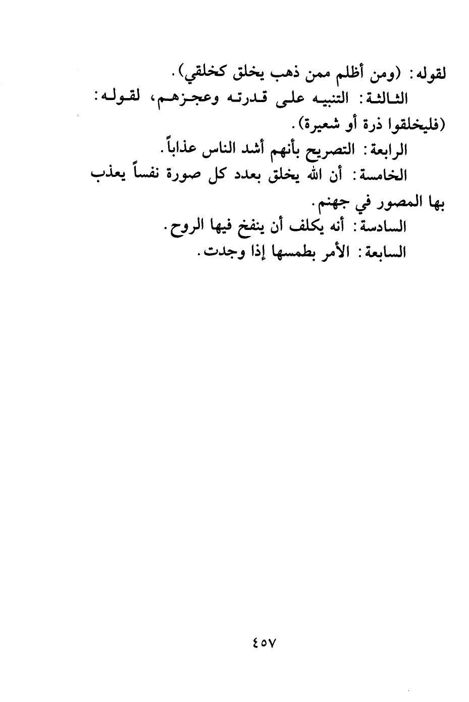 الخامسة: أن الله يخلق بعدد كل صورة نفساً يعذب بها المصور في جهنم.