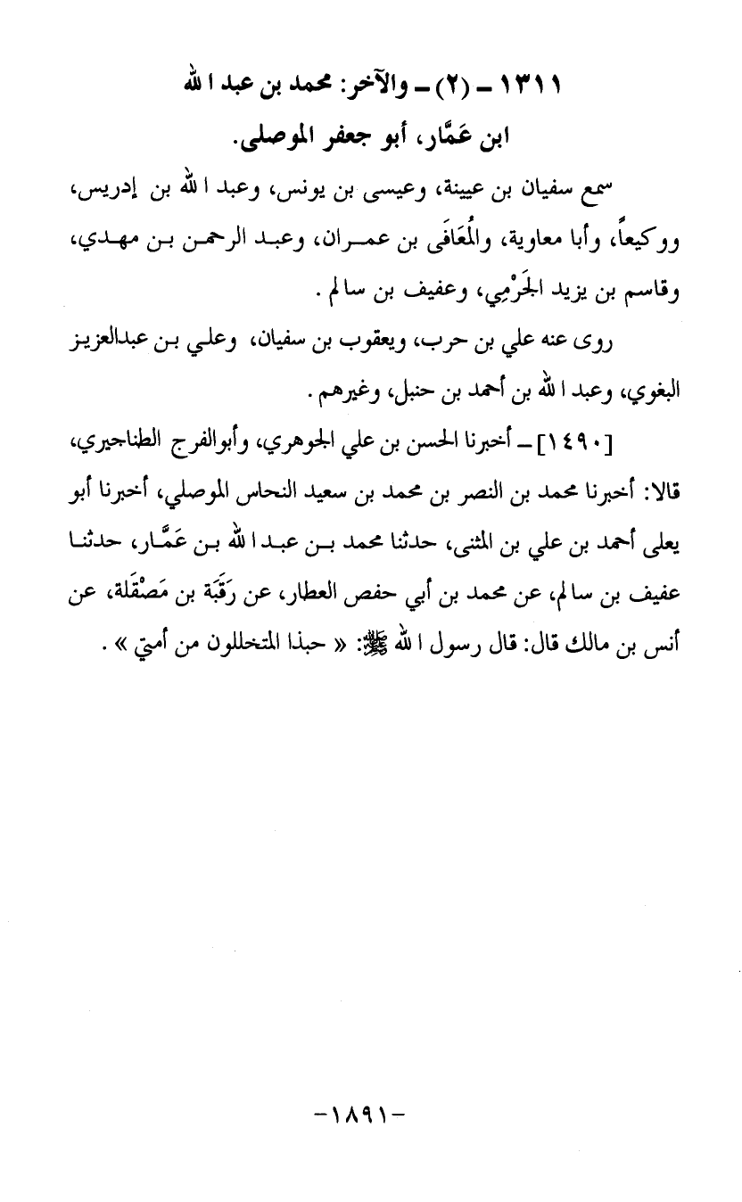 1311- (2) والآخر محمد بن عبد الله ابن عمار أبو جعفر الموصلي