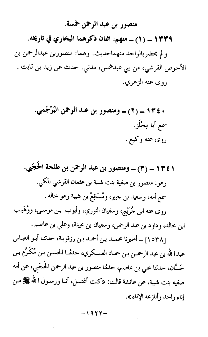 1341- (3) ومنصور بن عبد الرحمن بن طلحة الحجبي