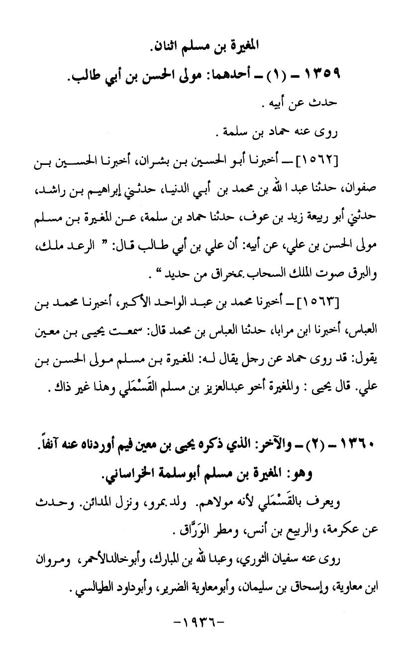 1360- (2) والآخر الذي ذكره يحيى بن معين فيم أوردناه عنه آنفا وهو المغيرة بن مسلم أبو سلمة الخراساني