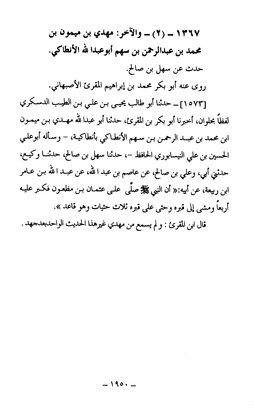 1367- (2) والآخر مهدي بن ميمون بن محمد بن عبد الرحمن بن سهم أبو عبد الله الأنطاكي