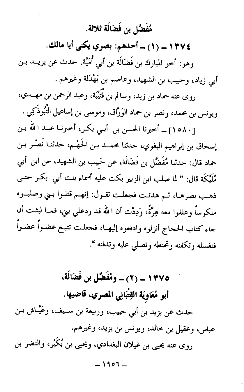 1375- (2) ومفضل بن فضالة أبو معاوية القتباني المصري قاضيها