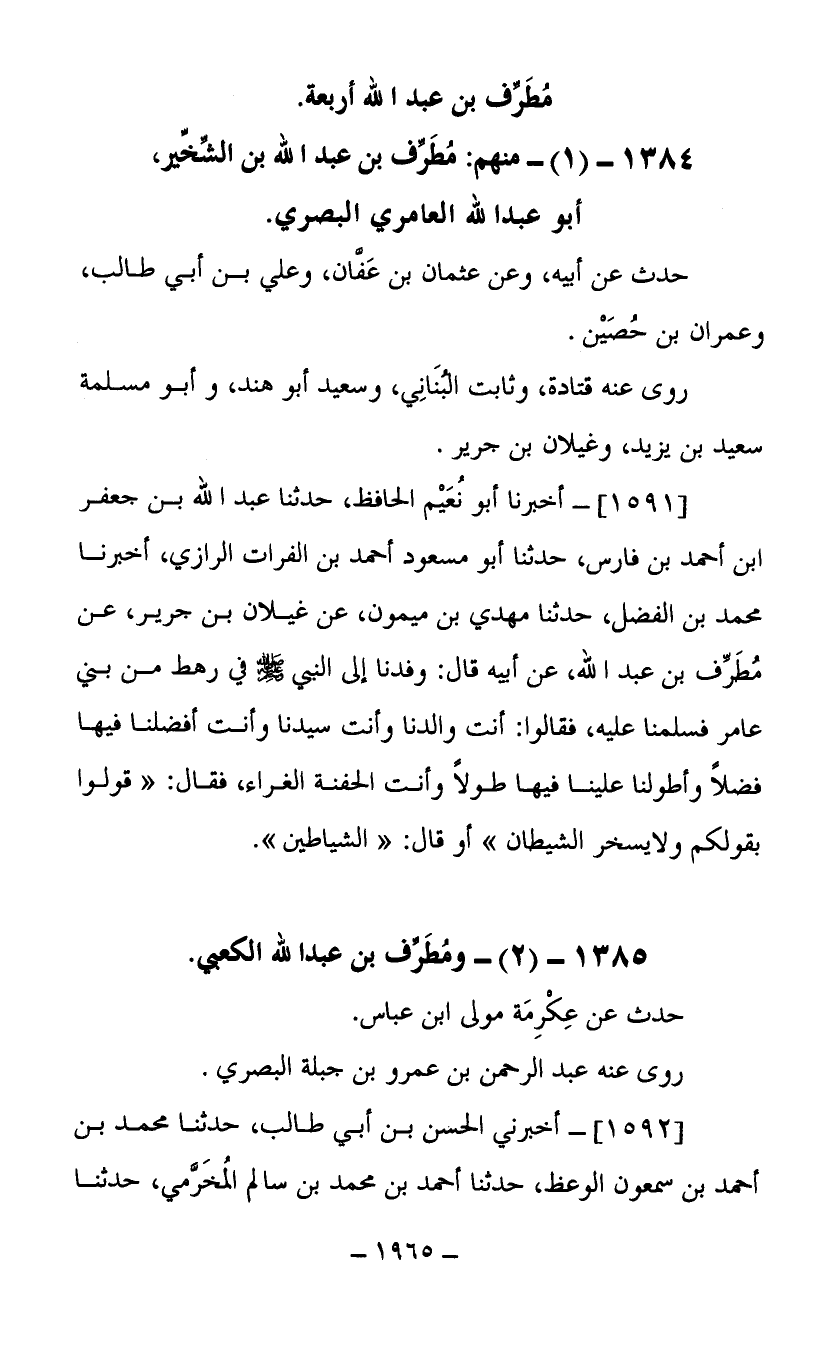 1384- (1) منهم مطرف بن عبد الله بن الشخير أبو عبد الله العامري البصري