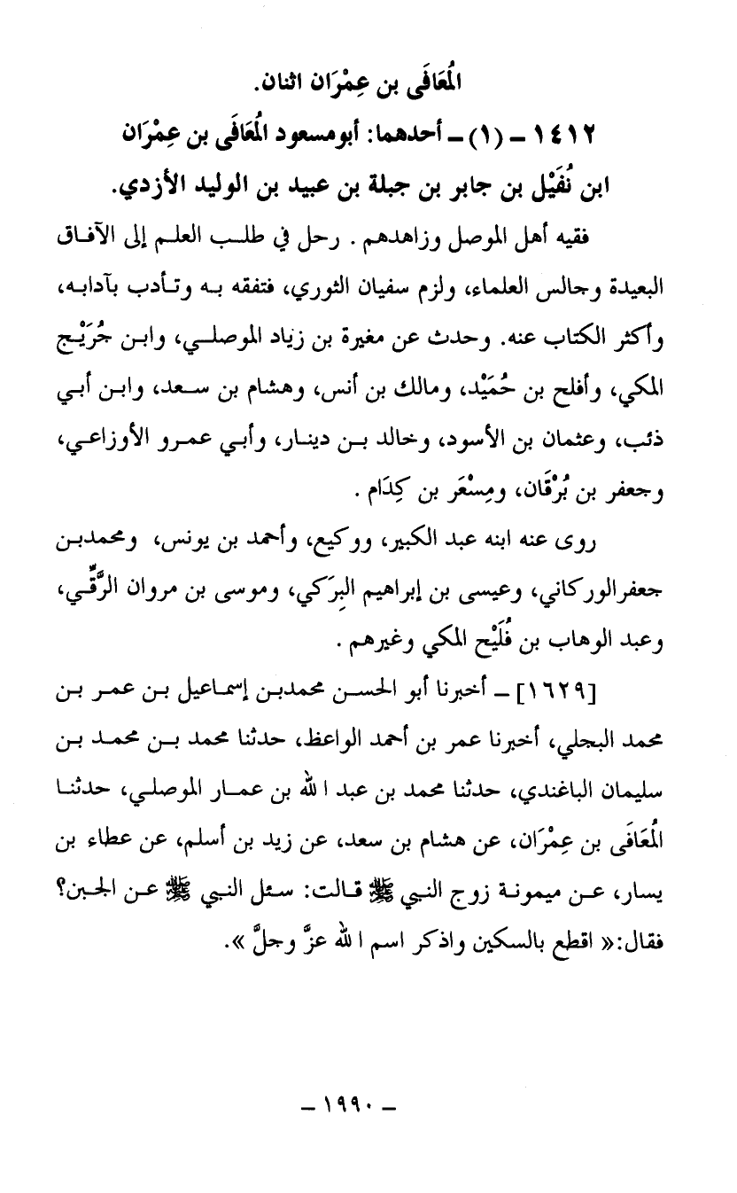 1412- (1) أحدهما أبو مسعود المعافي بن عمران ابن نفيل بن جابر بن جبلة بن عبيد بن الوليد الأزدي