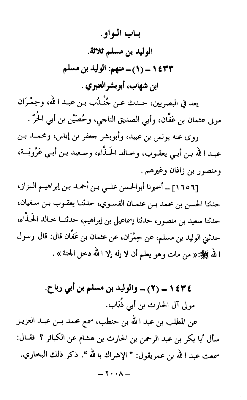 1433- (1) منهم الوليد بن مسلم ابن شهاب أبو بشر العنبري