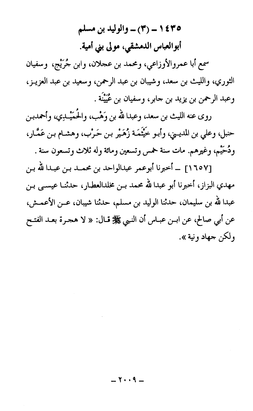 1435- (3) والوليد بن مسلم أبو العباس الدمشقي مولى بني أمية