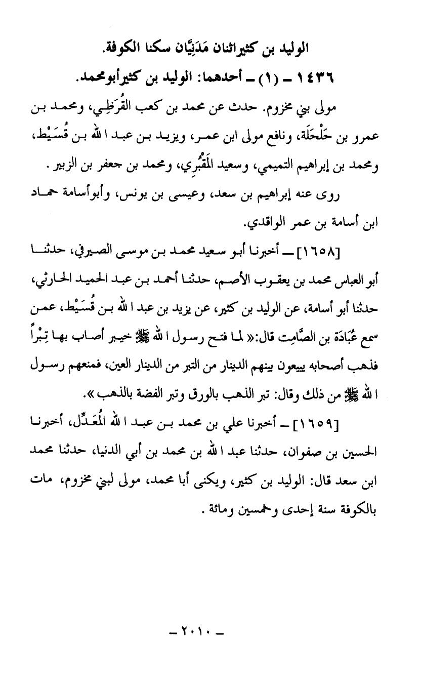 1436- (1) أحدهما الوليد بن كثير أبو محمد