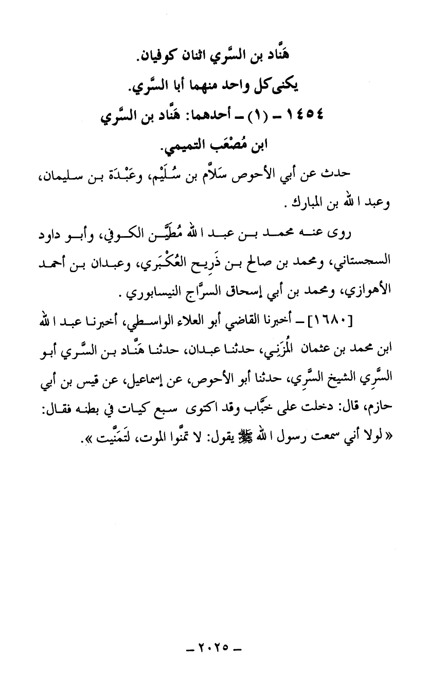 1454- (1) أحدهما هناد بن السري ابن مصعب التميمي