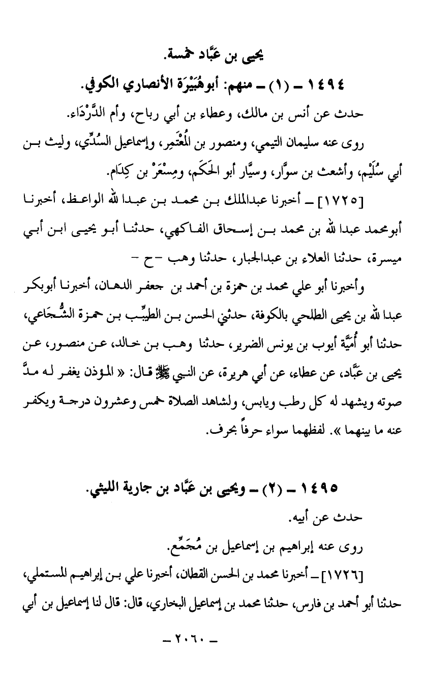 1495- (2) ويحيى بن عباد بن جارية الليثي