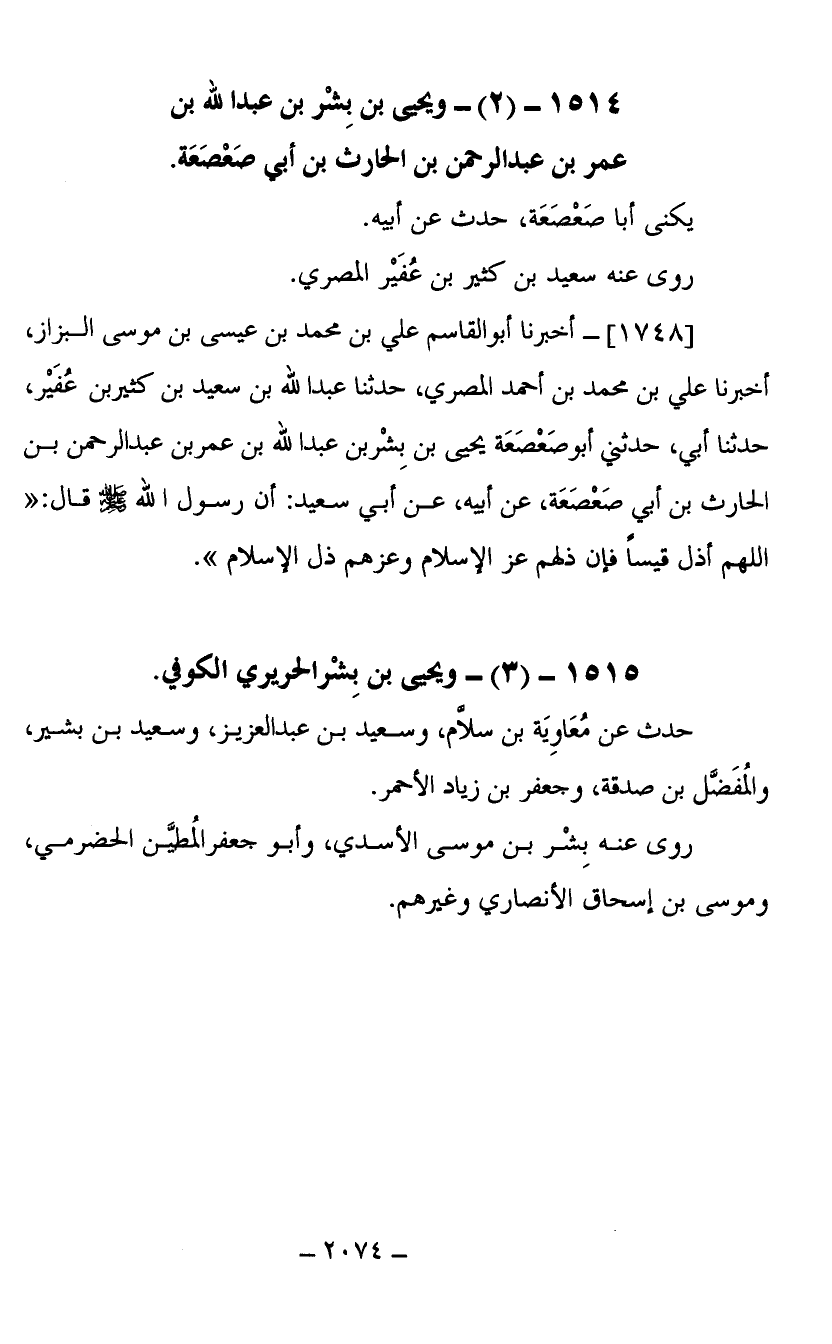 1514- (2) ويحيى بن بشر بن عبد الله بن عمر بن عبد الرحمن بن الحارث بن أبي صعصعة