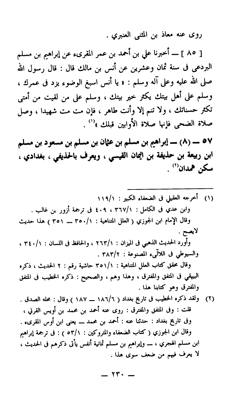 57- (8) إبراهيم بن مسلم بن عثمان بن مسلم بن مسعود بن مسلم ابن ربيعة بن حذيفة بن اليمان القيسي ويعرف بالحذيفي بغدادي سكن همدان.