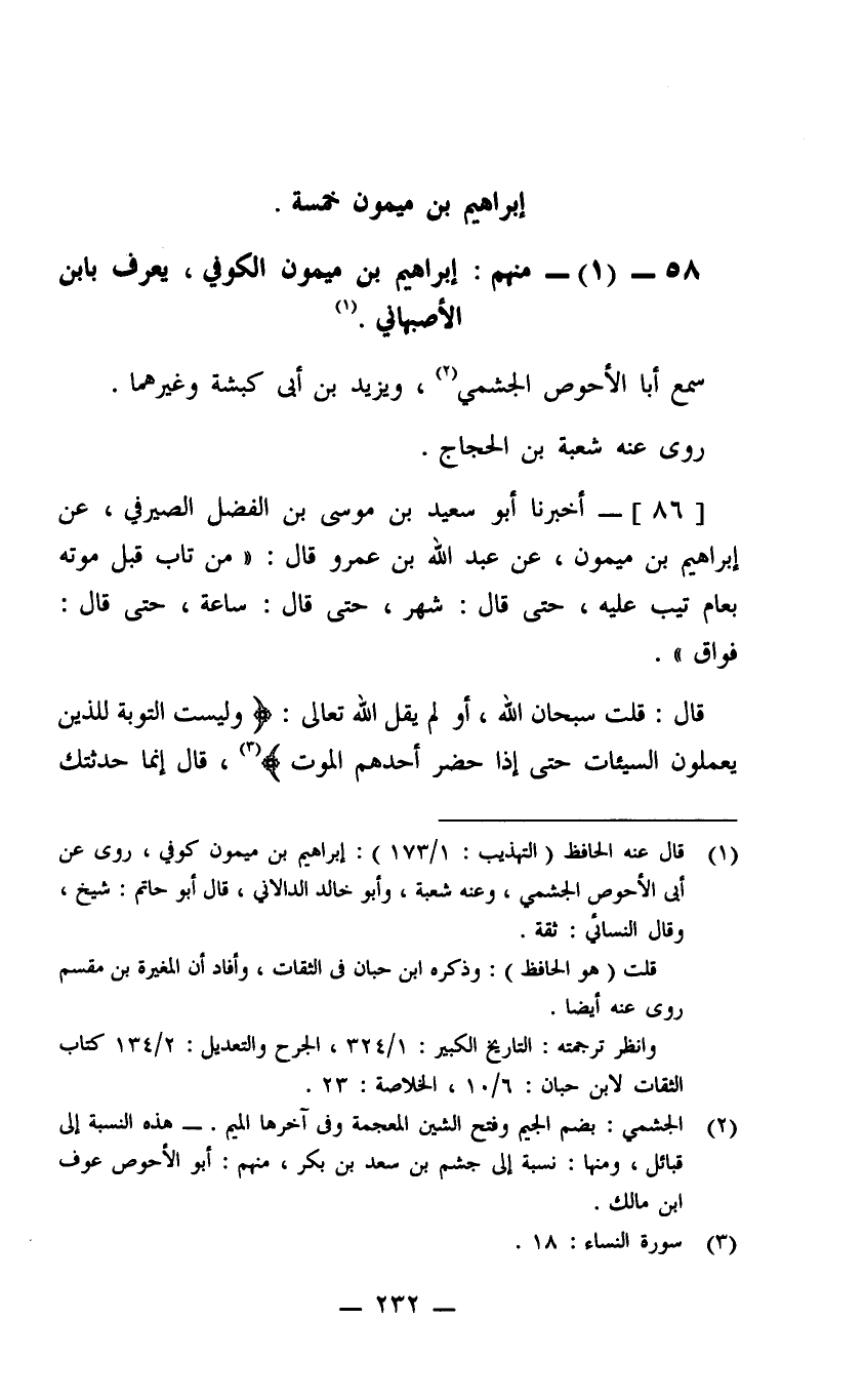 58- (1) منهم إبراهيم بن ميمون الكوفي يعرف بابن الأصبهاني.