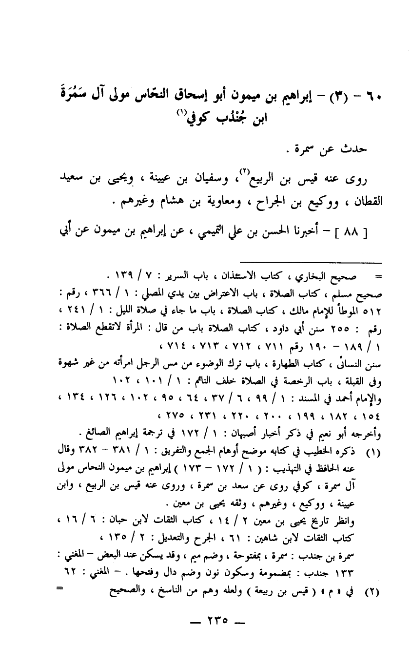 60- (3) إبراهيم بن ميمون أبو إسحاق النحاس مولى آل سمرة ابن جندب كوفي.