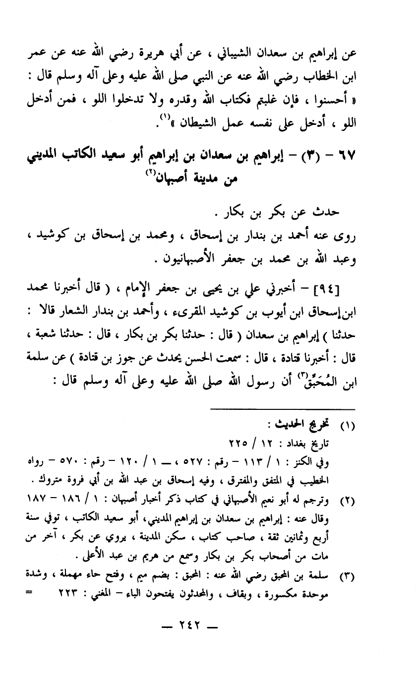 67- (3) إبراهيم بن سعدان بن إبراهيم أبو سعيد الكاتب المديني من مدينة أصبهان