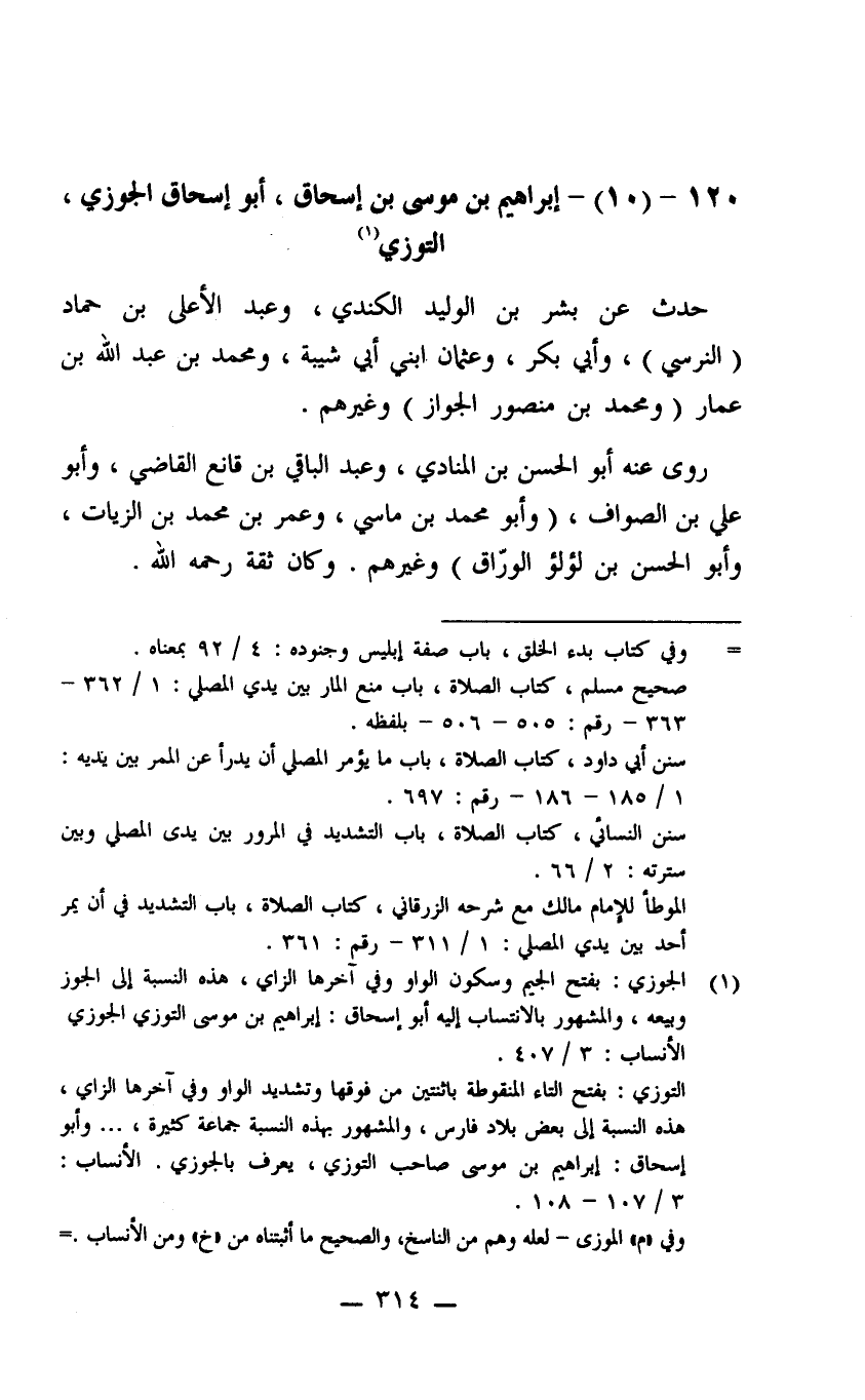 120- (10) إبراهيم بن موسى بن إسحاق أبو إسحاق الجوزي التوزي
