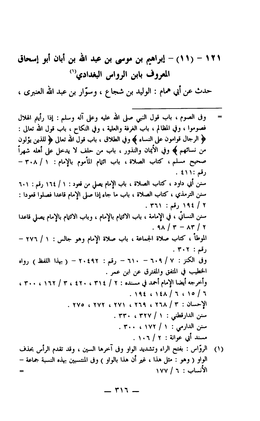 21- (11) إبراهيم بن موسى بن عبد الله بن أبان أبو إسحاق المعروف بابن الرواس البغدادي