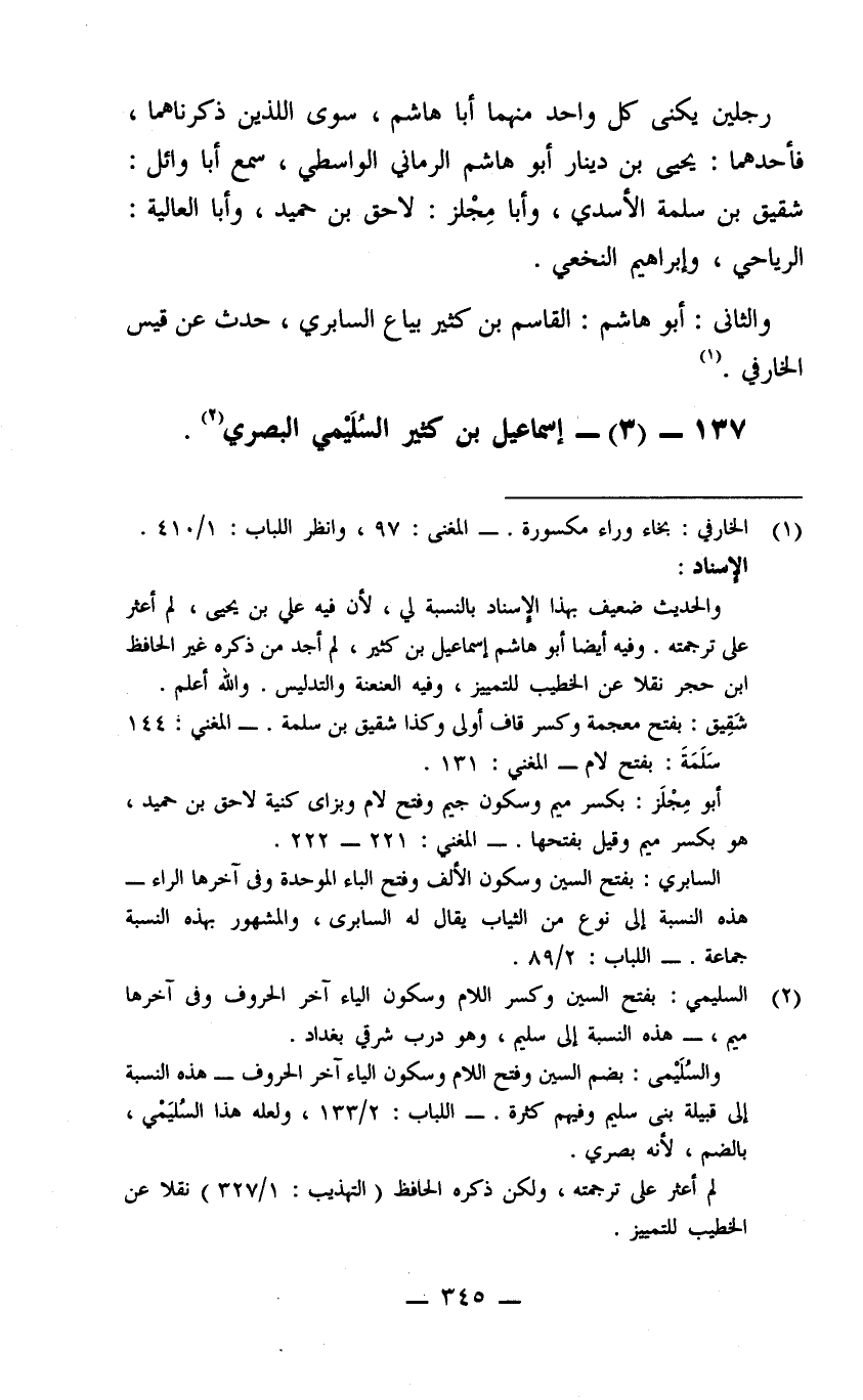 رجلين يكنى كل واحد منهما أبا هاشم سوى اللذين ذكرناهما فأحدهما يحيى بن دينار أبو هاشم الرماني الواسطي سمع أبا وائل شقيق بن سلمة الأسدي وأبا مجلز لاحق بن حميد وأبا العالية الرياحي وإبراهيم النخعي والثاني أبو هاشم القاسم بن كثير بياع السابري حدث عن قيس الخارفي.