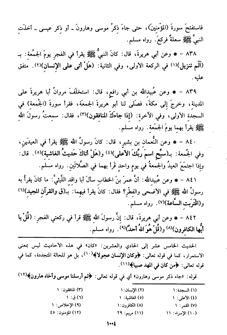 840 - وعن النعمان بن بشير، قال: كان رسول الله صلى الله عليه وسلم يقرأ في العيدين، وفي الجمعة: بـ (سبح اسم ربك الأعلي) و (هل أتاك حديث الغاشية). قال: وإذا اجتمع العيد والجمعة في يوم واحد قرأ بهما في الصلاتين. رواه مسلم.