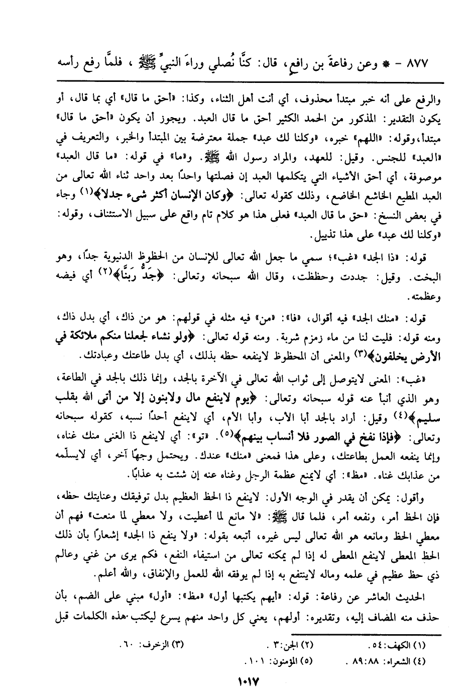 877 - وعن رفاعة بن رافع، قال: كنا نصلي وراء النبي صلى الله عليه وسلم، فلما رفع رأسه