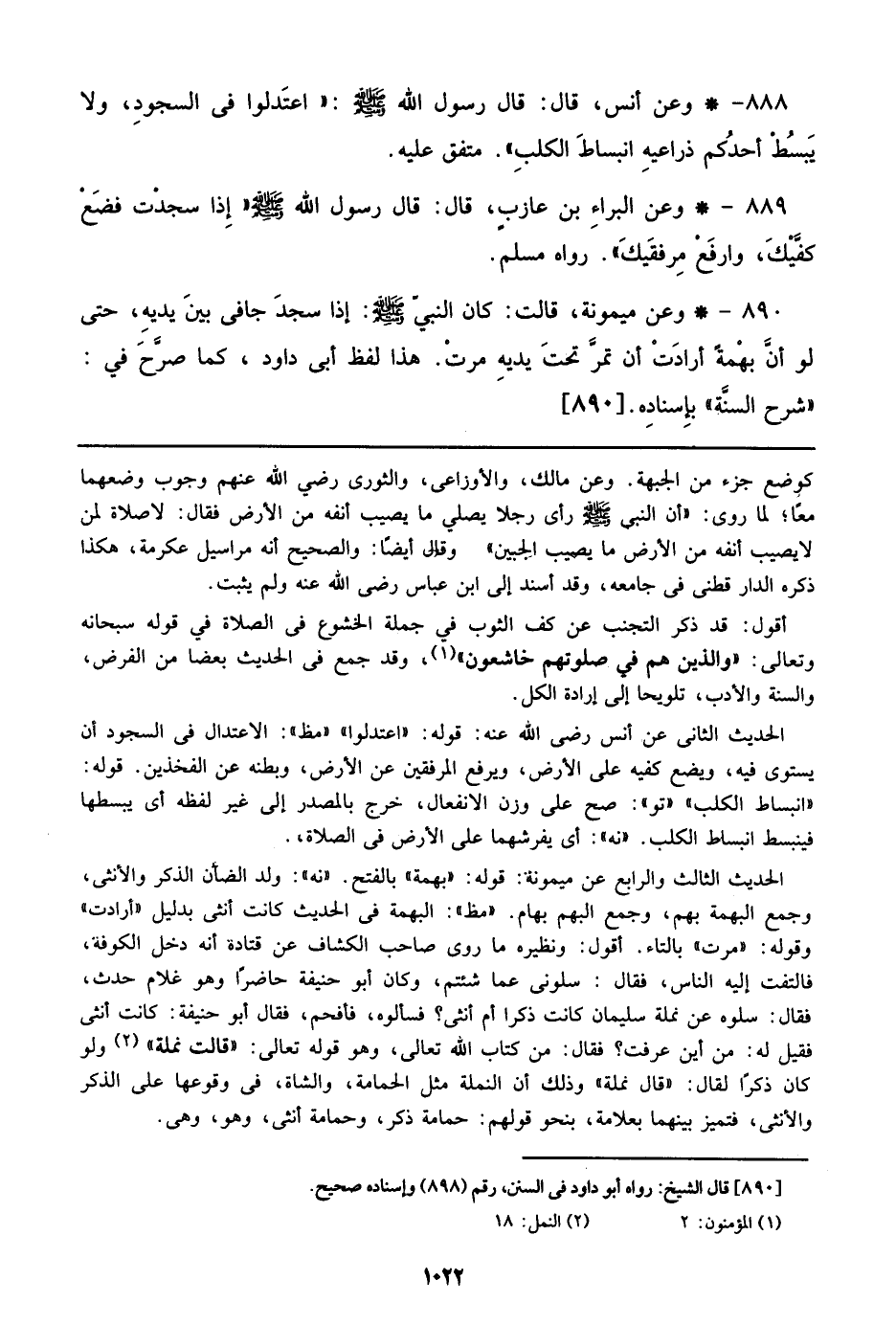 889 - وعن البراء بن عازب، قال: قال رسول الله صلى الله عليه وسلم ((إذا سجدت فضع كفيك، وارفع مرفقيك)). رواه مسلم.