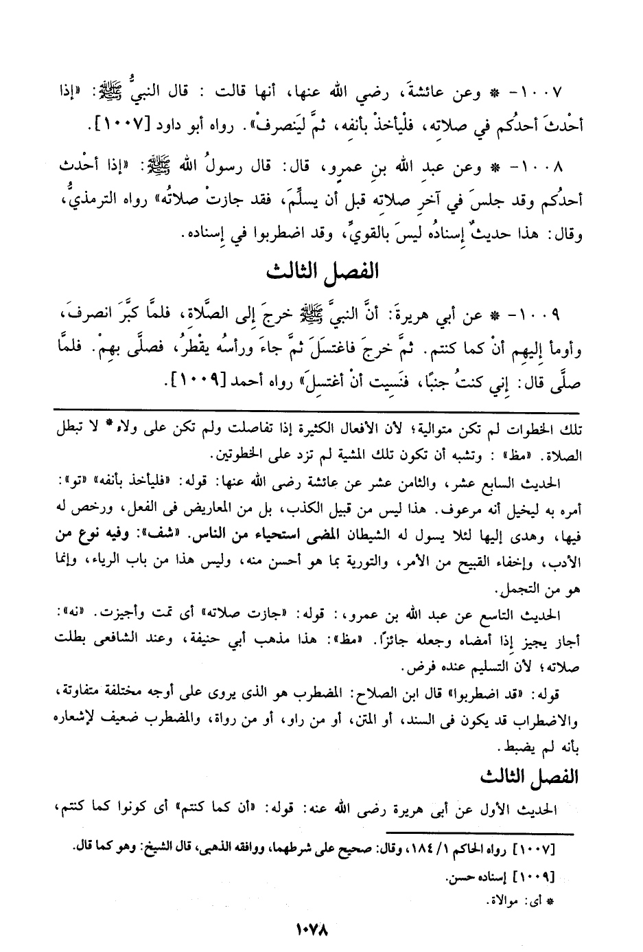 1008 - وعن عبد الله بن عمرو، قال: قال رسول الله صلى الله عليه وسلم: ((إذا أحدث أحدكم وقد جلس في آخر صلاته قبل أن يسلم، فقد جارت صلاته)) رواه الترمذي، وقال: هذا حديث إسناده ليس بالقوي، وقد اضطربوا في إسناده.