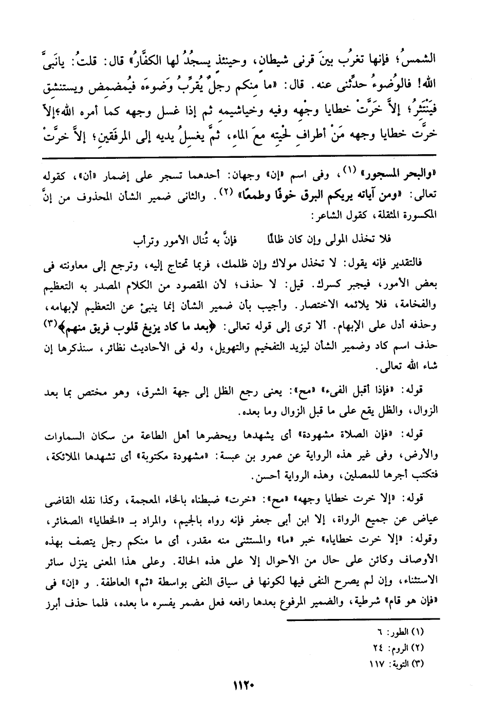 قوله: ((إلا خرت خطايا وجه)) ((مح)): ((خرت)) ضبطناه بالخاء المعجمة، وكذا نقله القاضي عياض عن جميع الرواة، إلا ابن أبي جعفر فإنه رواه بالجيم، والمراد بـ ((الخطايا)) الصغائر، قوله: ((إلا خرت خطاياه)) خبر ((ما)) والمستثنى منه مقدر، أي ما منكم رجل يتصف بهذه الأوصاف وكائن علي حال من الأحوال إلا علي هذه الحالة. وعلي هذا المعنى ينزل سائر الاستثناء، وإن لم يصرح النفي فيها لكونها في سياق النفي بواسطة ((ثم)) العاطفة. و ((إن)) في ((فإن هو قام)) شرطية، والضمير المرفوع بعدها رافعة فعل مضمر يفسره ما بعده، فلما حذف أبرز