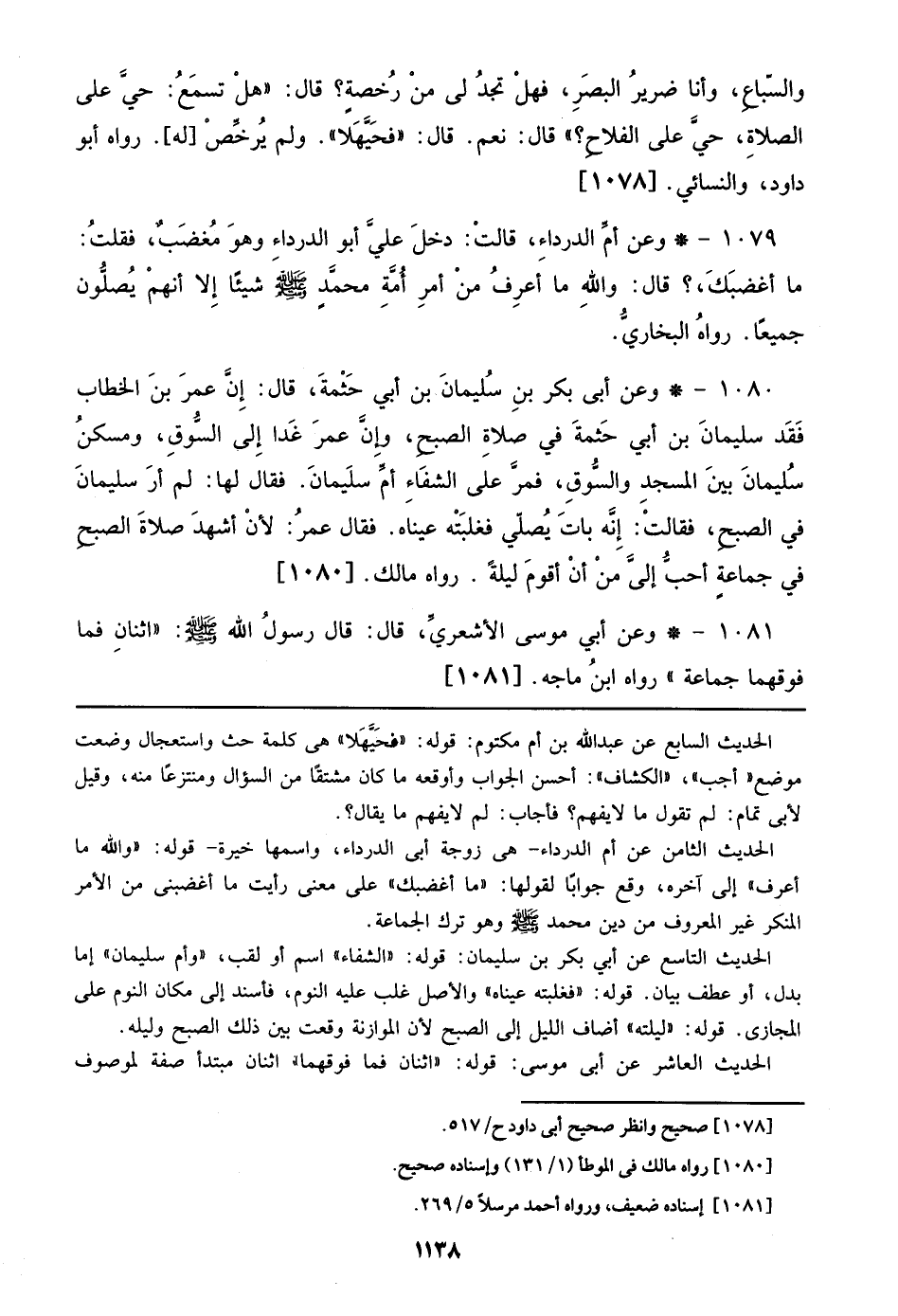 1081 - وعن أبي موسى الأشعري، قال: قال رسول الله صلى الله عليه وسلم: ((اثنان فما فوقها جماعة)) رواه ابن ماجه. [1081]