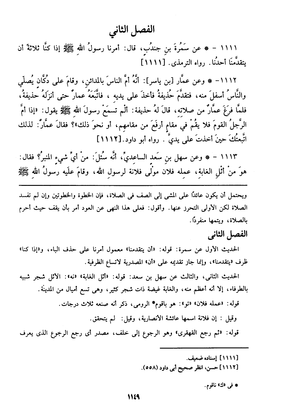 1111 - عن سمرة بن جندب، قال: أمرنا رسول الله صلى الله عليه وسلم إذا كنا ثلاثة أن يتقدمنا أحدنا. رواه الترمذي. [1111]