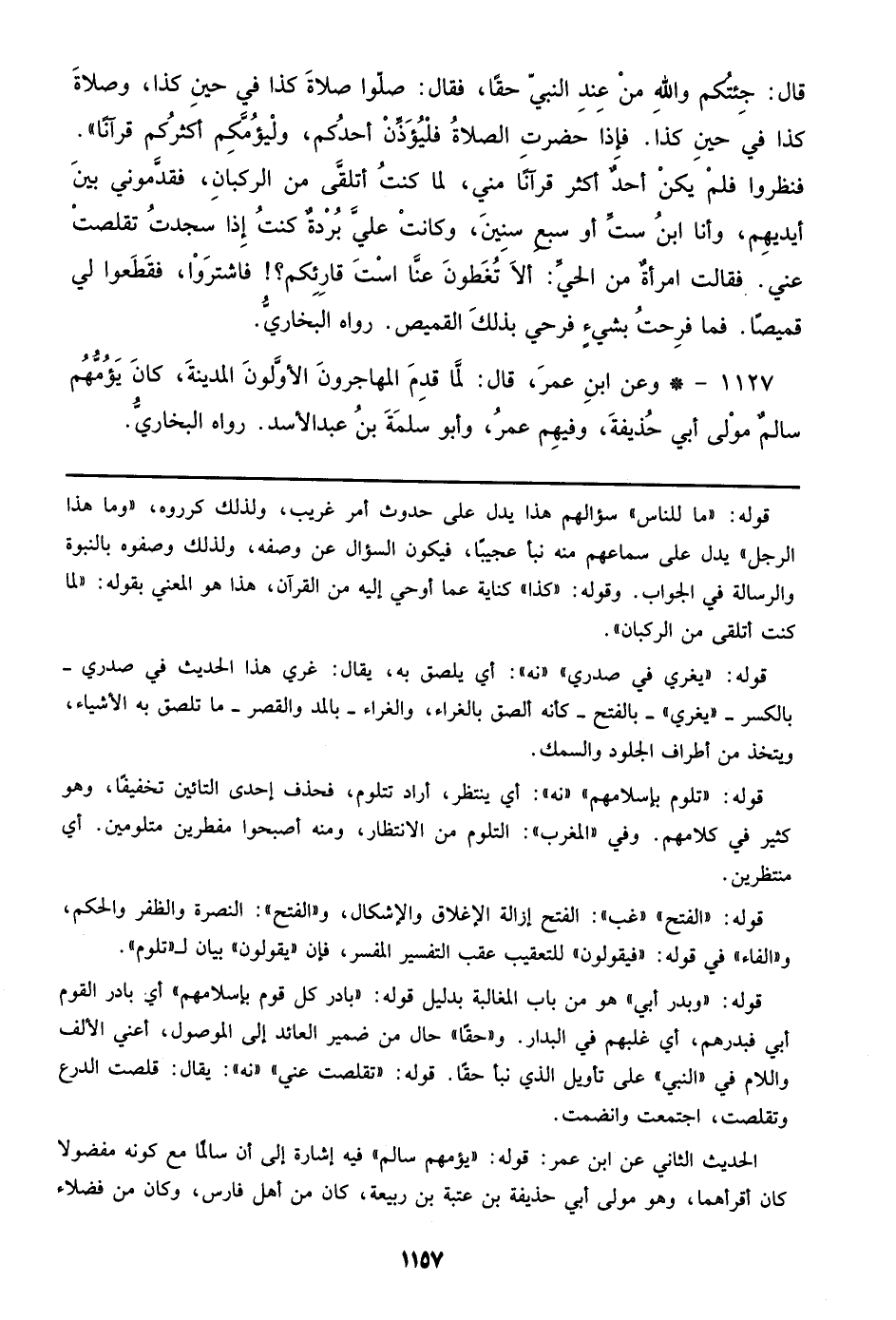 1127 - وعن ابن عمر، قال: لما قدم المهاجرون الأولون المدينة، كان يؤمهم سالم مولي أبي حذيفة، وفيهم عمر، وأبو سلمة بن عبد الأسد. رواه البخاري.