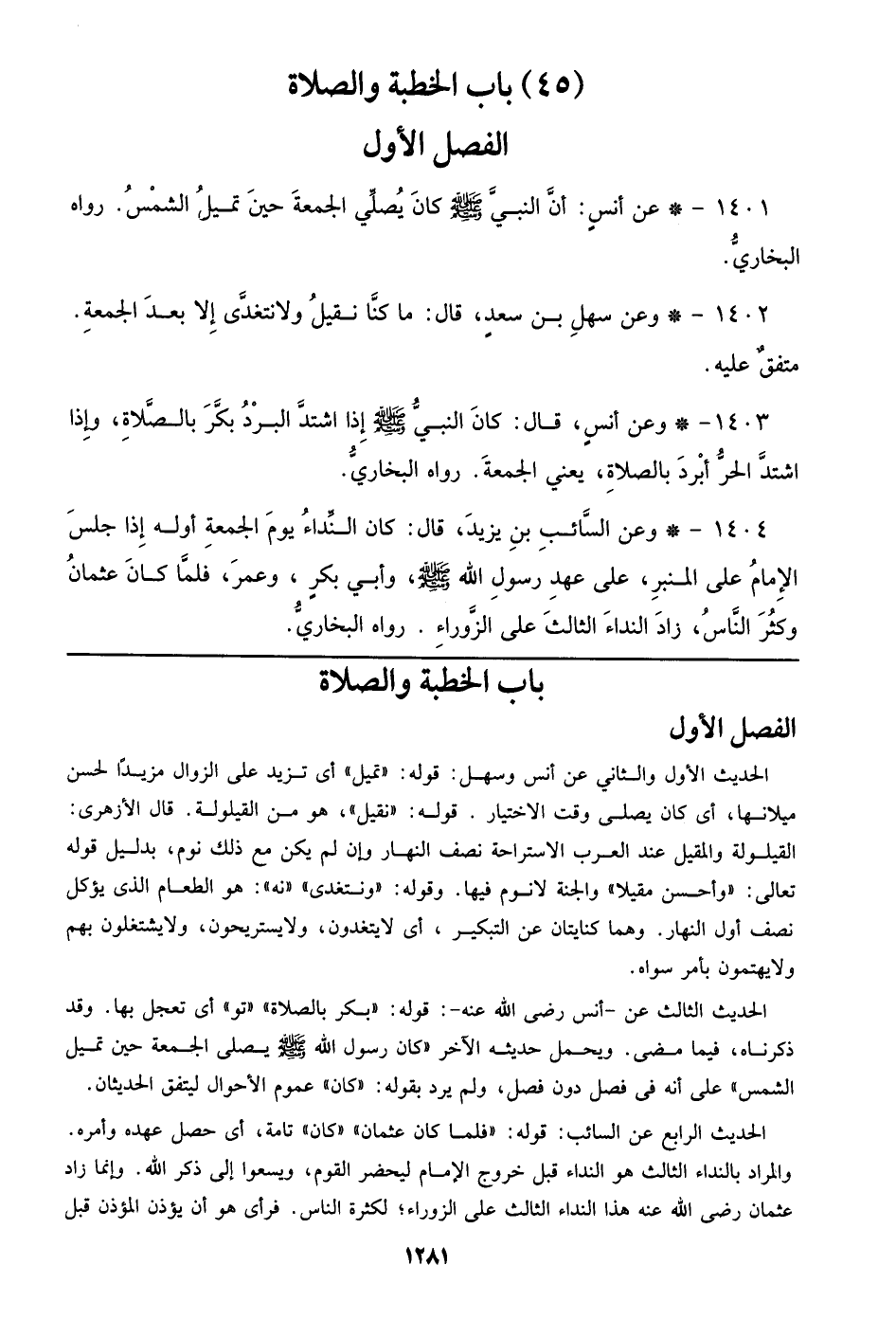 1401 - عن أنس: أن النبي صلى الله عليه وسلم كان يصلي الجمعة حين تميل الشمس. رواه البخاري.