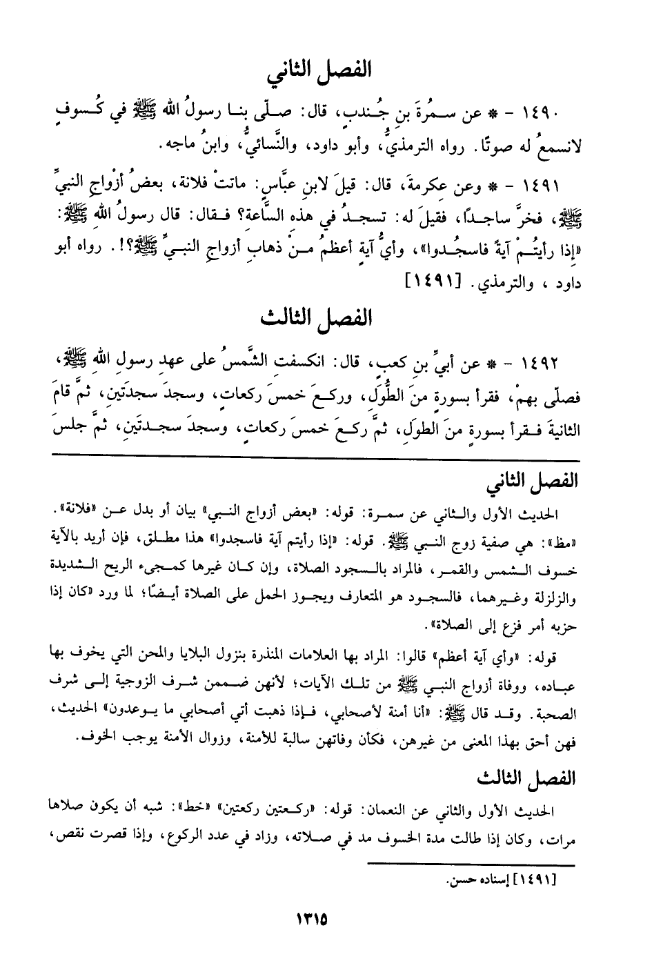 1490 - عن سمرة بن جندب، قال: صلي بنا رسول الله صلى الله عليه وسلم في كسوف لا نسمع له صوتًا، رواه الترمذي، وأبو داود، والنسائي، وابن ماجه.