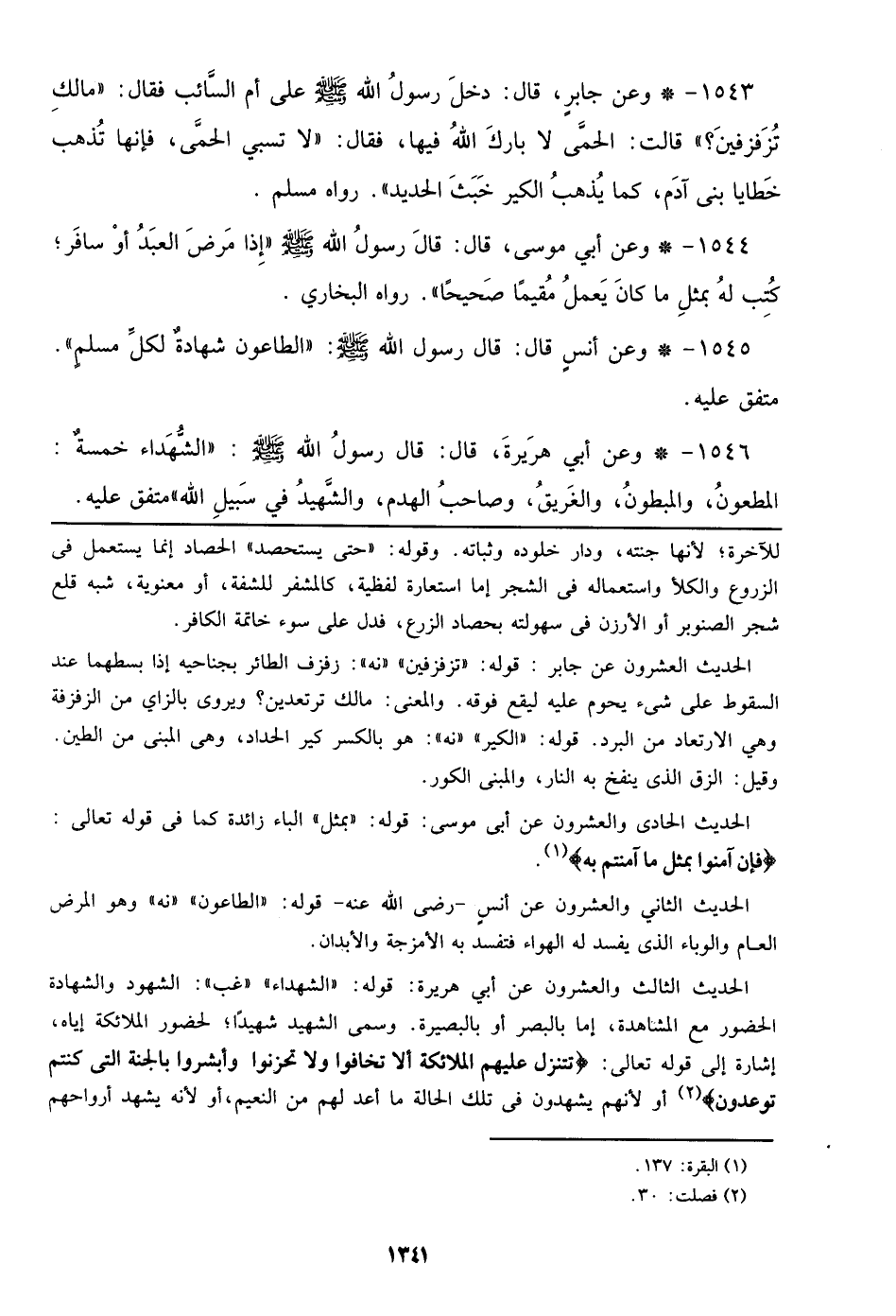 1545 - وعن أنس قال: قال رسول الله صلى الله عليه وسلم: ((الطاعون شهادة لكل مسلم)). متفق عليه.