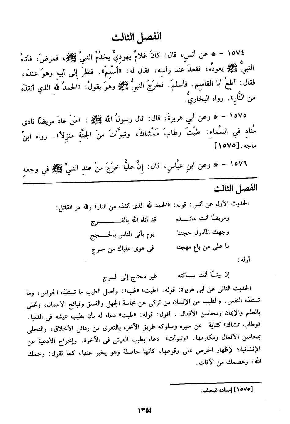 1575 - وعن أبي هريرة، قال: قال رسول الله صلى الله عليه وسلم: ((من عاد مريضًا نادى مناد في السماء: طبت وطاب ممشاك، وتبوأت من الجنة منزلاً)). رواه ابن ماجه. [1575]
