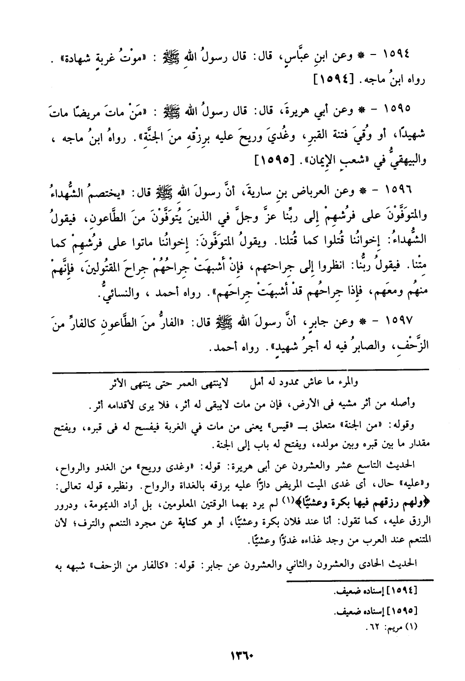 1594 - وعن ابن عباس: قال: قال رسول الله صلى الله عليه وسلم: ((موت غربة شهادة)). رواه ابن ماجة. [1594]
