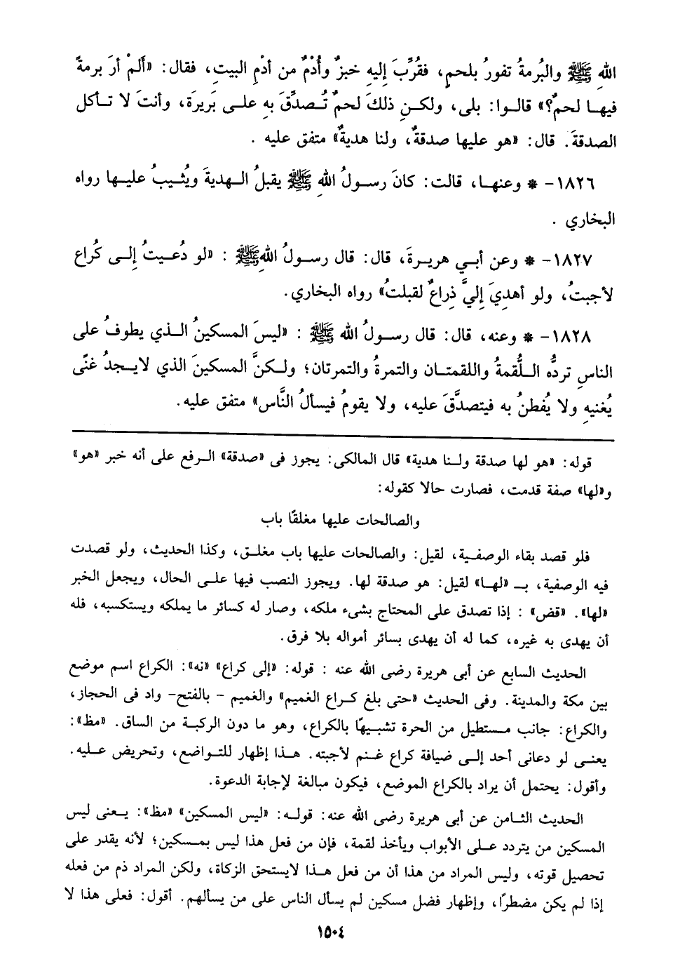 1828 - وعنه، قال: قال رسولُ الله صلى الله عليه وسلم: ((ليسَ المسكينُ الذي يطوفُ علي الناسِ تردُّه اللُّقمة واللقمتان والتمرةُ والتمرتان؛ ولكنَّ المسكينَ الذي لايجدُ غنى يُغنيهِ ولا يُفطنُ به فيتصدَّقَ عليه، ولا يقومُ فيسألُ النَّاس)) متفق عليه.