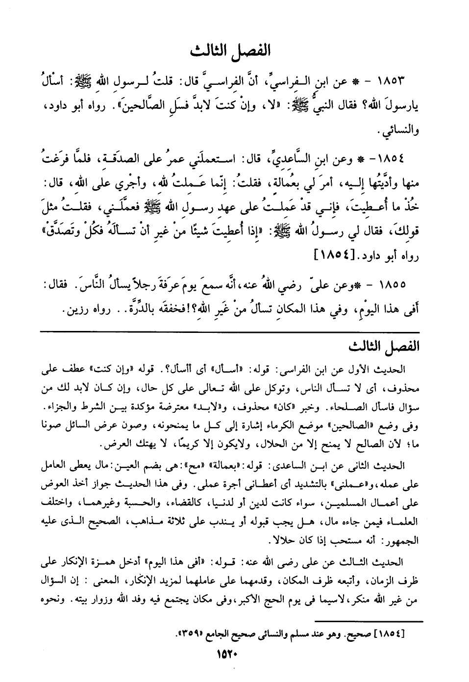 1853 - عن ابن الفِراسيِّ، أنَّ الفِراسيَّ قال: قلتُ لرسولِ الله صلى الله عليه وسلم: أسْألُ يا رسولَ الله؟ فقال النبيُّ صلى الله عليه وسلم: ((لا، وإنْ كنتَ لابدَّ فسَلِ الصَّالحينَ)). رواه أبو داود، والنسائي.