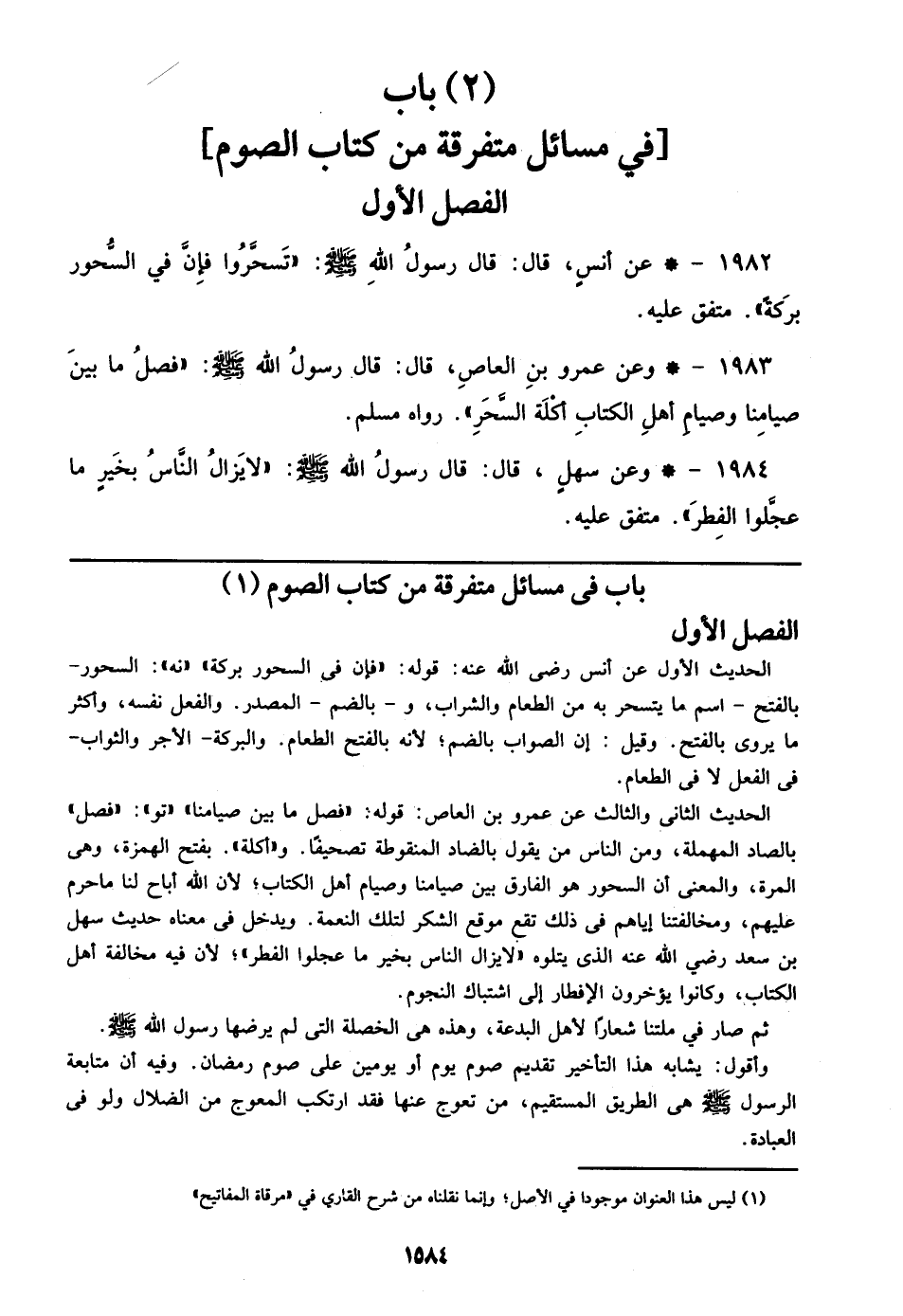 (2) باب [في مسائل متفرقة من كتاب الصوم]
