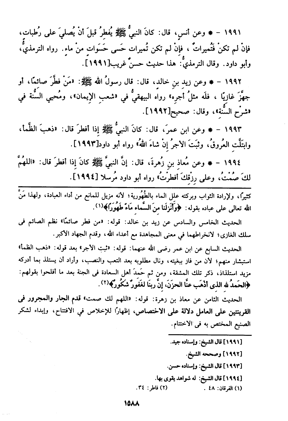1993 - وعن ابن عمرَ، قال: كانَ النبيُّ صلى الله عليه وسلم إِذا أفطرَ قال: ((ذهبَ الظَّمأ، وابتَلَّتِ العُروقَ، وثَبتَ الأجرُ إِنْ شاءَ اللهُ)) رواه أبو داود [1993].