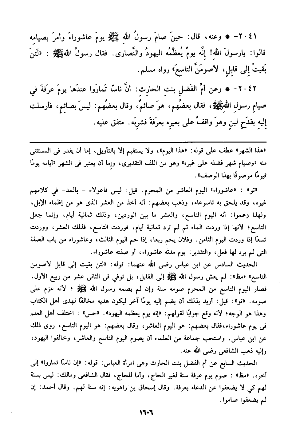 2041 - وعنه، قال: حينَ صامَ رسولُ الله صلى الله عليه وسلم يوم عاشوراءَ وأمر بصيامِه قالوا: يارسولَ اللهِ! إِنَّه يومٌ يُعظِّمُه اليهودُ والنَّصارى. فقال رسول الله صلى الله عليه وسلم: ((لئنْ بَقيتُ إلي قابلٍ، لأصومَنَّ التاسعَ)) رواه مسلم.