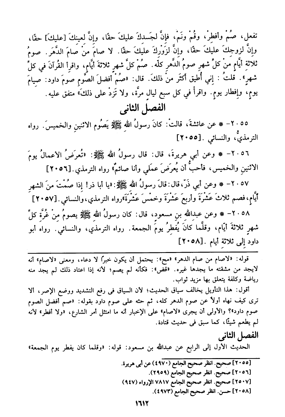 2055 - عن عائشة، قالتْ: كان رسول الله صلى الله عليه وسلم يَصُوم الاثنين والخميسَ. رواه الترمذيُّ، والنسائي. [2055]