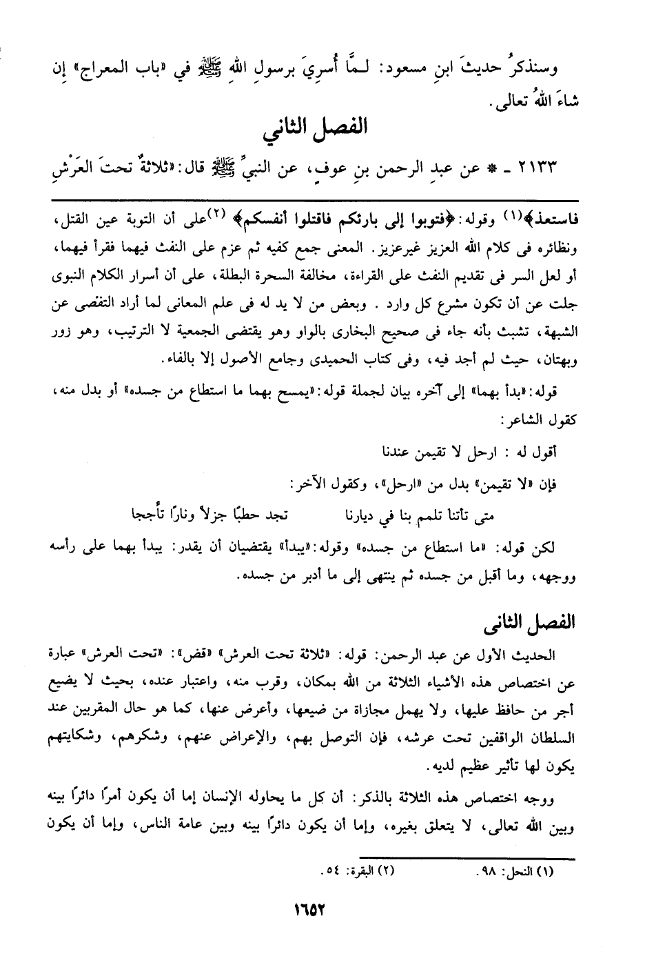 2133 - عن عبد الرحمن بن عوف، عن النبي صلى الله عليه وسلم قال: ((ثلاثة تحت العرش