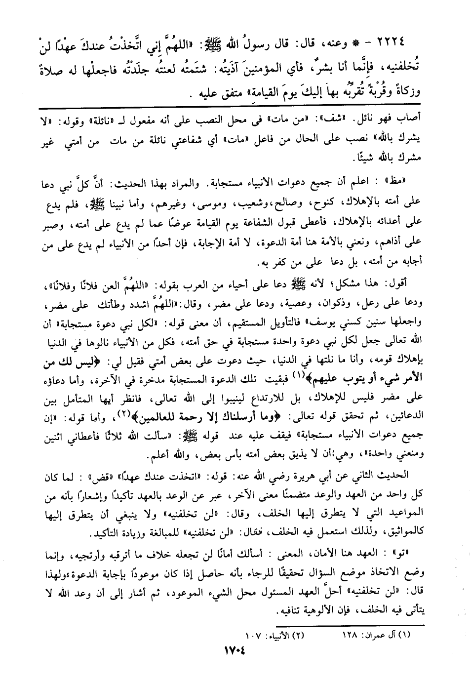 2224 - وعنه قال: قال رسول الله صلى الله عليه وسلم: ((اللهم إني اتخذت عندك عهدا لن تخلفنيه، فإنما أنا بشر، فأي المؤمنين آذيته: شتمته لعنته جلدته فاجعلها له صلاة وزكاة وقربة تقربه بها إليك يوم القيامة)) متفق عليه.