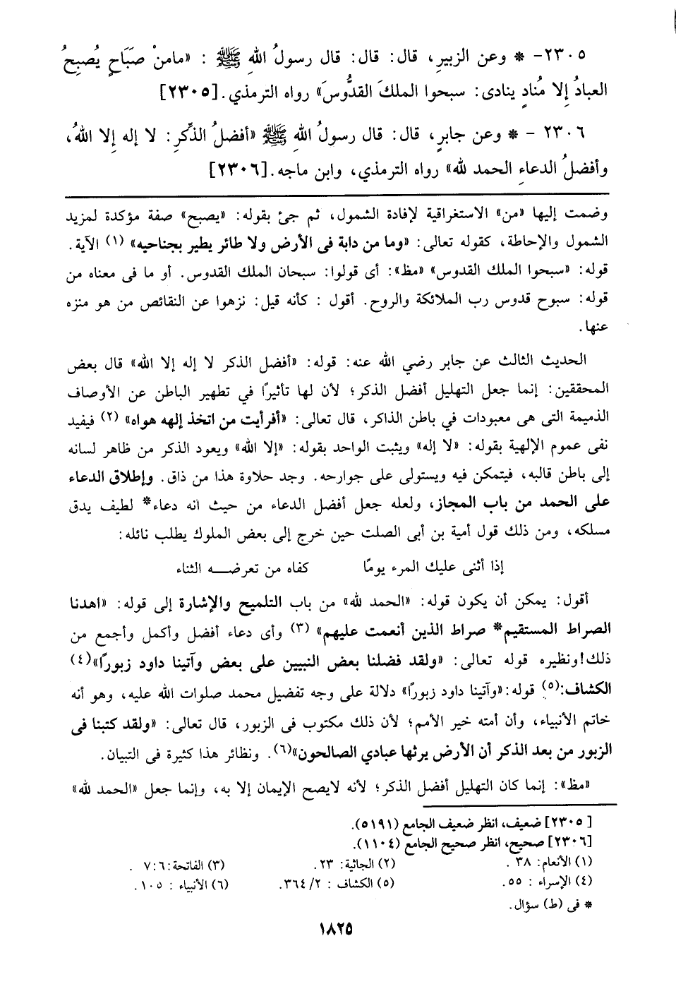 2305 - وعن الزبير، قال: قال: قال رسول الله صلى الله عليه وسلم: ((ما من صباح يصبح العباد إلا مناد ينادي: سبحوا الملك القدوس)) رواه الترمذي. [2305]