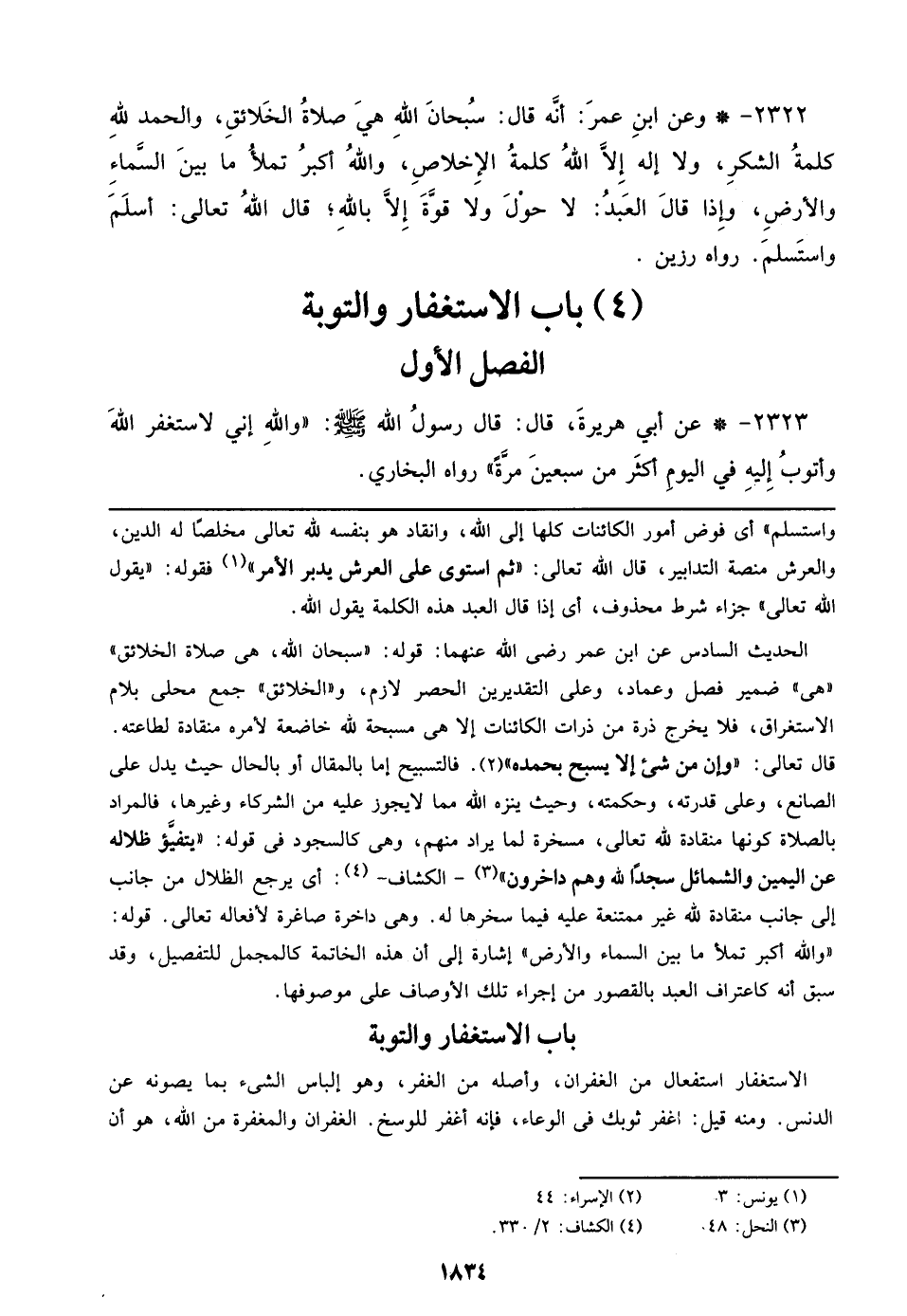 2323 - عن أبي هريرة، قال: قال رسول الله صلى الله عليه وسلم: ((والله إني لأستغفر الله وأتوب إليه في اليوم أكثر من سبعين مرة)) رواه البخاري.
