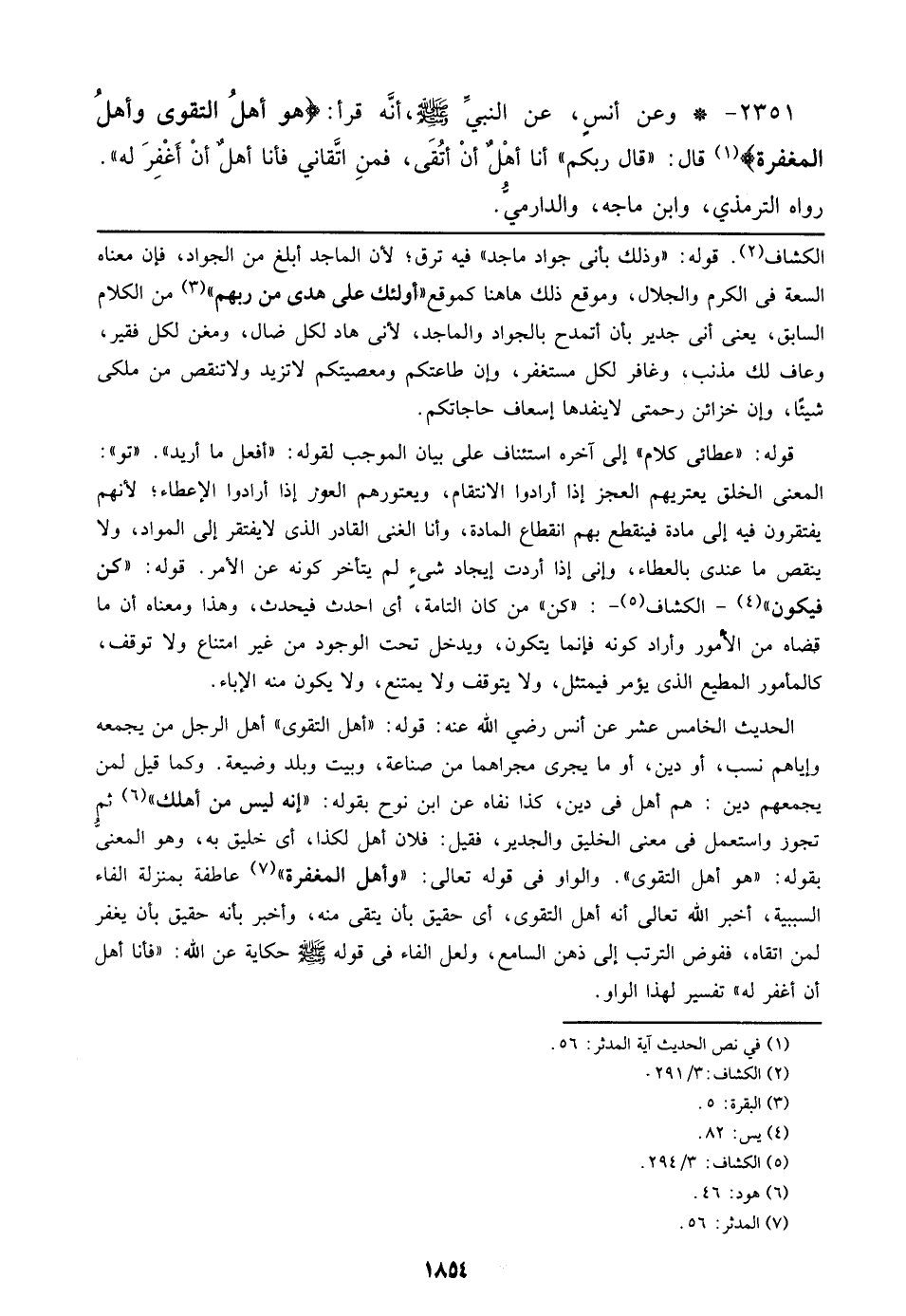 2351 - وعن أنس، عن النبي صلى الله عليه وسلم، أنه قرأ:} هو أهل التقوى وأهل المغفرة {قال: ((قال ربكم)) أنا أهل أن أتقى، فمن اتقإني فأنا أهل أنا أغفر له)).رواه الترمذي، وابن ماجه، والدرامي.