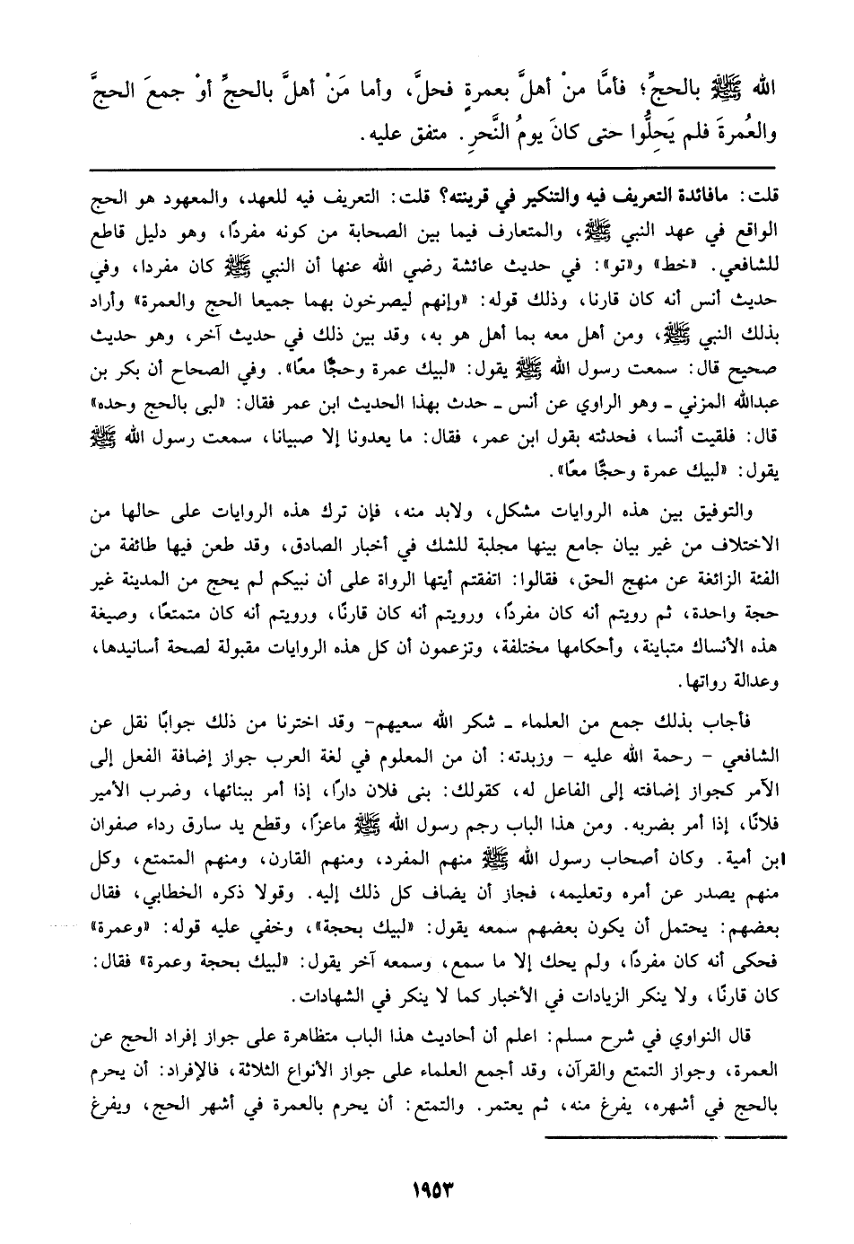 قال النواوي في شرح مسلم: اعلم أن أحاديث هذا الباب متظاهرة علي جواز إفراد الحج عن