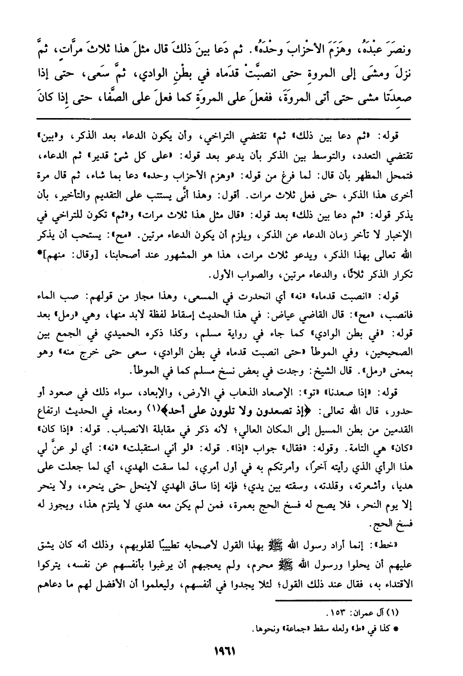 قوله: ((انصبت قدماه)) ((نه)) أي انحدرت في المسعى، وهذا مجاز من قولهم: صب الماء فانصب، ((مح)): قال القاضي عياض: في هذا الحديث إسقاط لفظة لابد منها، وهي ((رمل)) بعد قوله: ((في بطن الوادي)) كما جاء في رواية مسلم، وكذا ذكره الحميدي في الجمع بين الصحيحين، وفي الموطأ ((حتى انصبت قدماه في بطن الوادي، سعى حتى خرج منه)) وهو بمعنى ((رمل)). قال الشيخ: وجدت في بعض نسخ مسلم كما في الموطأ.
