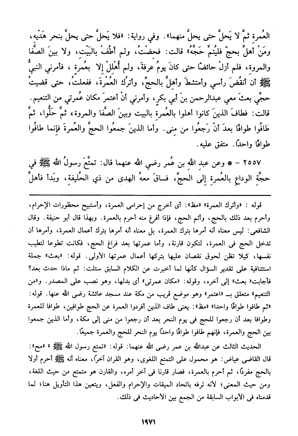 2557 - وعن عبد الله بن عمر رضي الله عنهما قال: تمتع رسول الله صلى الله عليه وسلم في