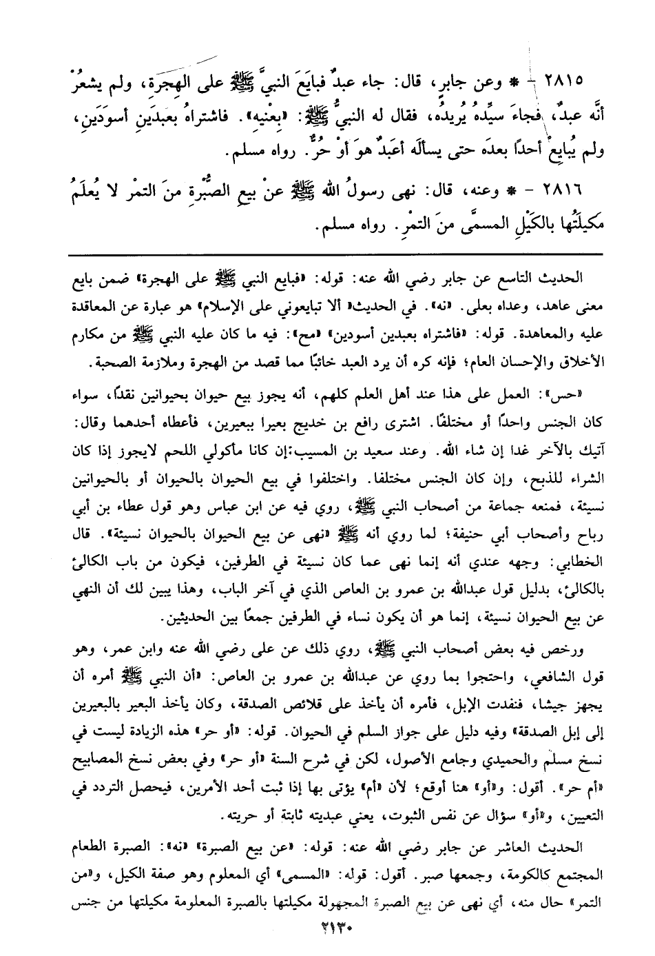 2815 - وعن جابر، قال: جاء عبدٌ فبايع النبي صلى الله عليه وسلم علي الهجرة، ولم يشعر أنه عبدٌ، فجاء سيده يريده، فقال له النبي صلى الله عليه وسلم: ((بعنيه)). فاشتراه بعبدين أسودين، ولم يبايع أحداً بعده حتى يسأله أعبدٌ هو أو حرٌ. رواه مسلم.